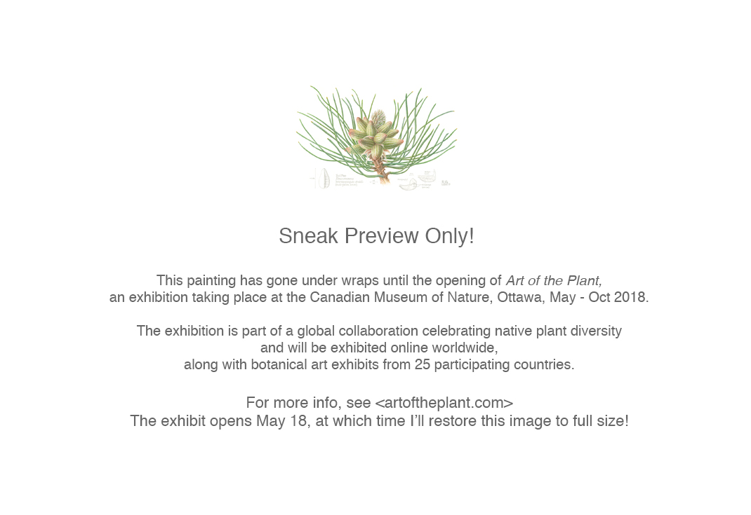 April 11, 2018 1070 × 735 pinus-resinosa-1070w-sneak-preview Bundle of male pollen cones of the Red Pine, one of the most prolific native trees of Canada. Watercolour, casein, and graphite, 13″h x 19″w, ©Kathryn Chorney
