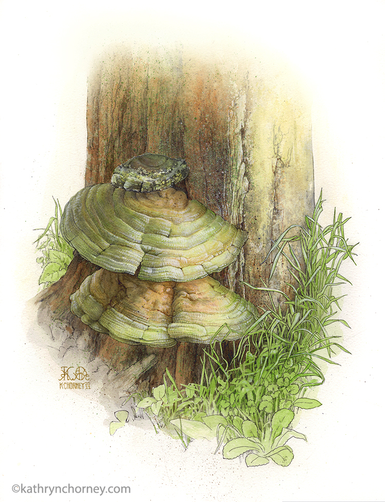 Found on a dead tree stump in Wellington County, Ontario, this specimen became my first fungus illustration. It won an award from the Puget Sound Mycological Society, one of the largest mycological societies in the USA.