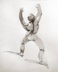 - 1-min drawing with stick, brush, and colour ink; model in costume as a boxer