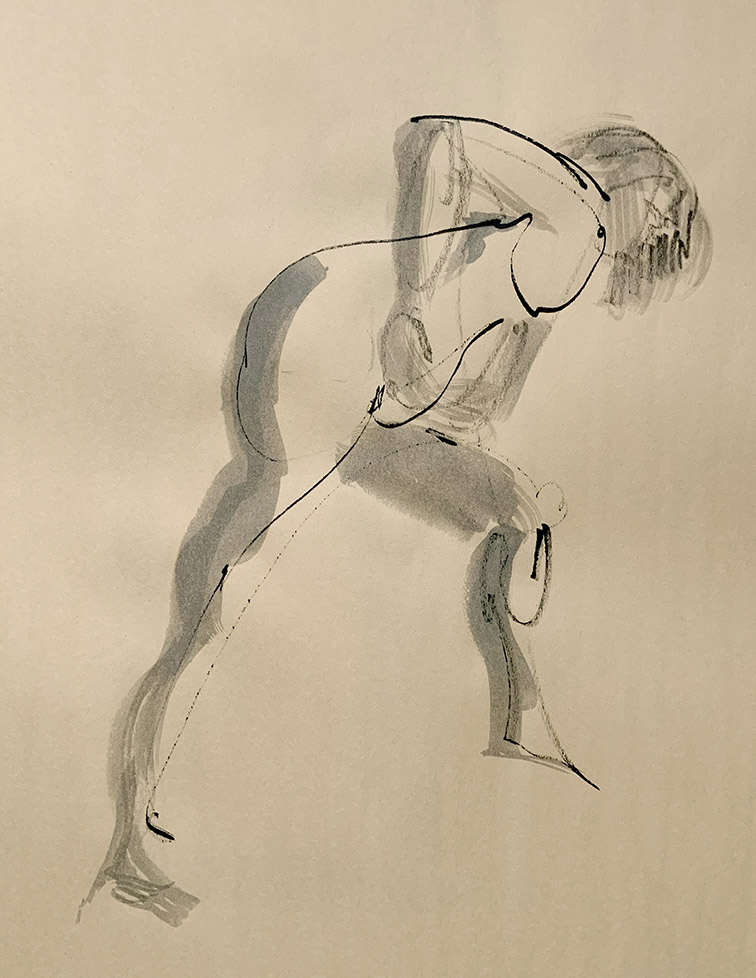 February 2, 2020 756 × 978 Female-LeaningToSide One-minute gesture in ink line and wash. ©Kathryn Chorney