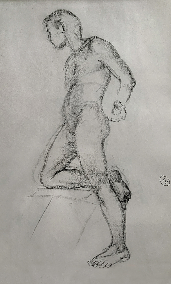 August 13, 2025 589 × 978 male-standing-hand-extended-15 min Male, standing, hand extended – 15 min study, conte on newsprint 2025