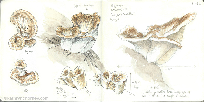 August 4, 2017 800 × 399 Dryad’s Saddle Fungus Near our new home, there is an old tree stump that plays host to a large population of fungi that reappear at frequent intervals. This Dryad’s Saddle takes a variety of fascinating forms as it grows.