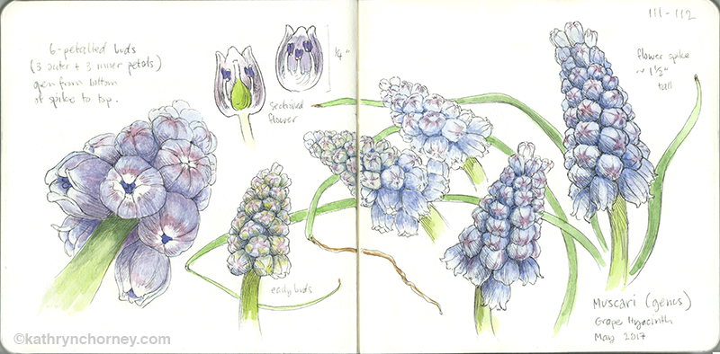 August 4, 2017 800 × 394 Grape Hyacinth Tiny signs of spring: Grape Hyacinths that escape from garden beds out into the lawns and verges of the city. Tiny, complex structures, with the spiralling form so often seen in nature.