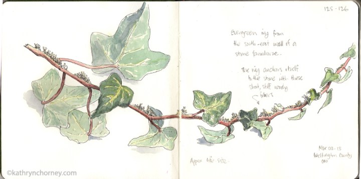 - Ivy, March 2013. I found this ivy growing on a stone farmhouse in Wellington County, Ontario. The ivy grows short, tough fibers that allow it to attach to the wall.
