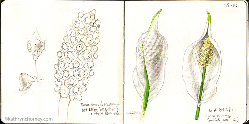 January 18, 2016 800 × 400 Spathiphyllum – ‘Peace Lily’ 2, October Spathiphyllum – ‘Peace Lily’ 2, October. The Peace Lily’s spathe (white ‘petal’) fully opens. I shot phone-cam photos through a magnifying glass to discover the minute structures of the composite flower head.