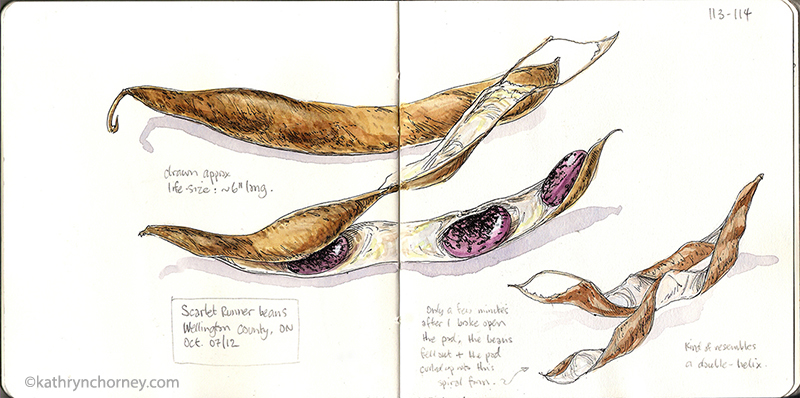 January 18, 2016 800 × 398 Scarlet Runner Beans, October Scarlet Runner Beans, October. I opened one runner-bean pod to see the brilliantly-coloured beans. A few minutes later, the bean pod had curled up into a double-helix form.