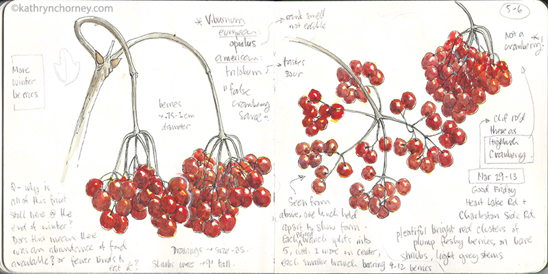 January 19, 2016 800 × 401 Highbush Cranberry, March Highbush Cranberry, March. Because I’m left-handed, I have a habit of starting my notes at the right-hand side of the page and continuing towards the left. (I’m sure the only thing I can claim to have in common with Leonardo da Vinci.)