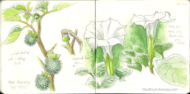 January 19, 2016 800 × 398 Moon Lilies 2, October Moon Lilies 2, October. As in the previous image, the progression in this drawing is from right to left (habit of a left-hander – I start my sketchbooks from the ‘back’ as well).
