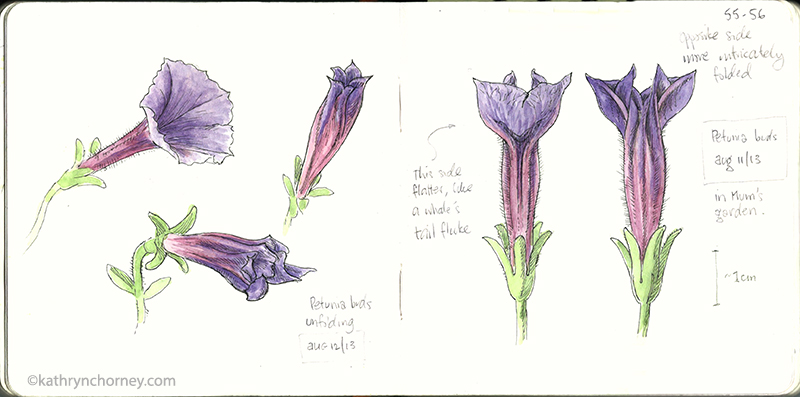 January 19, 2016 800 × 397 Purple Petunias, August Purple Petunias, August. More petunias in my mother’s garden. Me being me, I’m not primarily interested in pretty blooms (although they are lovely); I like to study the interesting forms of the emerging flowers as they unfold.