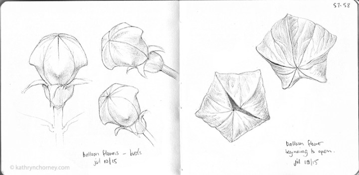 - Balloon Flower buds in my front garden. Graphite pencil.