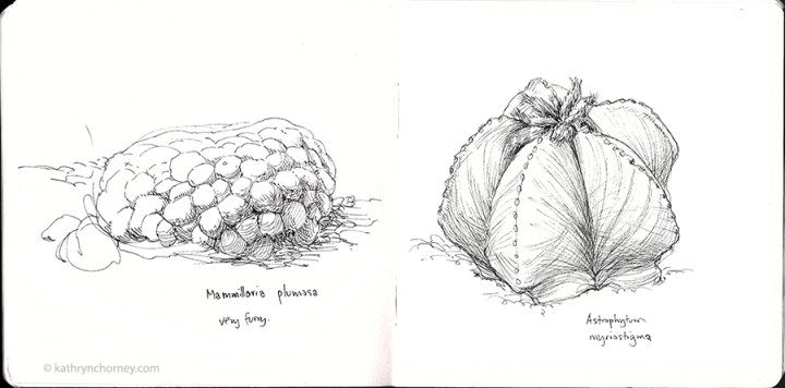 - Two Cactuses: Mammilaria, and Astrophyta, Royal Botanical Gardens, Burlington, Ontario, pigma ink pen.