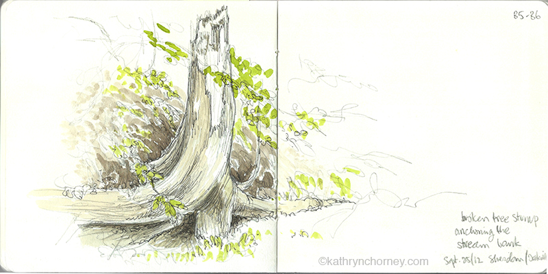 August 10, 2017 800 × 401 Treestump Anchoring Stream Bank 1 Another relationship found in nature — a tree stump helping to anchor the stream bank.